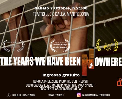 Al Teatro Comunale “L. Dalla” di Manfredonia la proiezione di “The Years We Have Been Nowhere”. Il film di Lucio Cascavilla e Mauro Piacentini sulle deportazioni di oggi, per dare voce a tutte le famiglie che vengono separate e rispedite nei paesi di origine. Alla proiezione seguirà l’incontro con i registi e con Yvan Sagnet dell’associazione NO CAP. Sabato 7 ottobre 2023 ore 21.00 – Manfredonia.