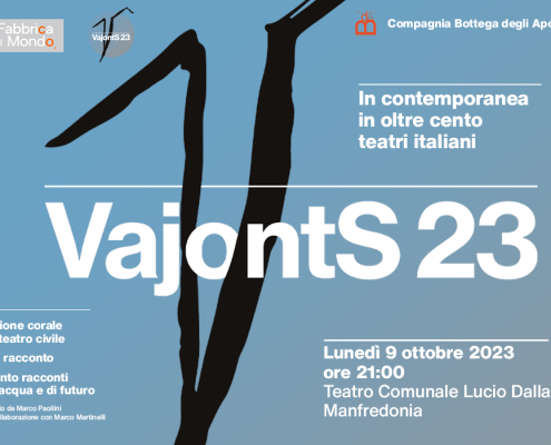 Chiamata pubblica per “VajontS 23” a Manfredonia con la Compagnia Bottega degli Apocrifi. VajontS 23, il 9 ottobre 2023, a 60 anni dalla tragedia azione corale di teatro civile in 130 teatri in contemporanea.
