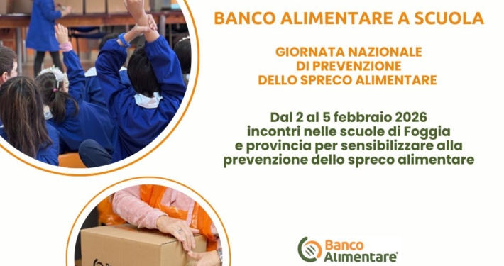 Danila Paradiso2026-01-27 15:25:072026-01-27 15:26:20Il 5 febbraio 2026 si celebra la 13^ Giornata nazionale di Prevenzione dello Spreco Alimentare. Banco Alimentare della Daunia incontra gli studenti per sensibilizzare le nuove generazioni alla prevenzione dello spreco alimentare. Dal 2 al 5 febbraio 2026 in cinque istituti scolastici di Foggia e provincia. Agli incontri porteranno la testimonianza anche quattro organizzazioni partner convenzionate con Banco Alimentare della Daunia.