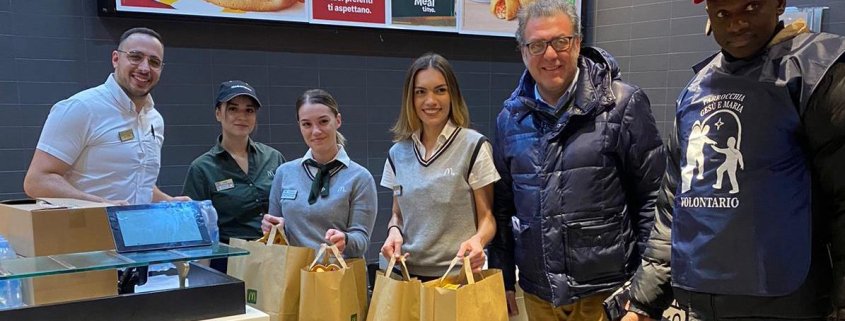 Il ristorante McDonald’s di Foggia in corso del Mezzogiorno è coinvolto da vicino nel progetto. Il team di lavoro del ristorante si occupa della preparazione dei pasti, ritirati e distribuiti alla Parrocchia di Gesù e Maria.