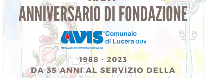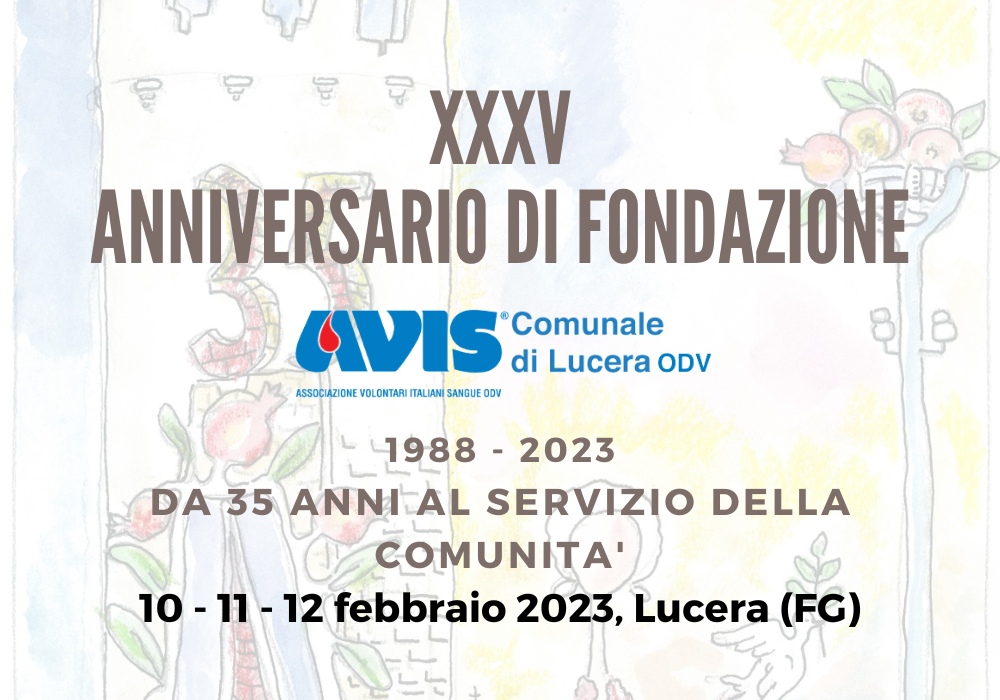 L’AVIS di Lucera celebra il 35° anniversario di fondazione con una tre giorni di festa. Atteso il presidente di AVIS nazionale Gianpietro Briola. Dal 10 al 12 febbraio 2023 a Lucera.