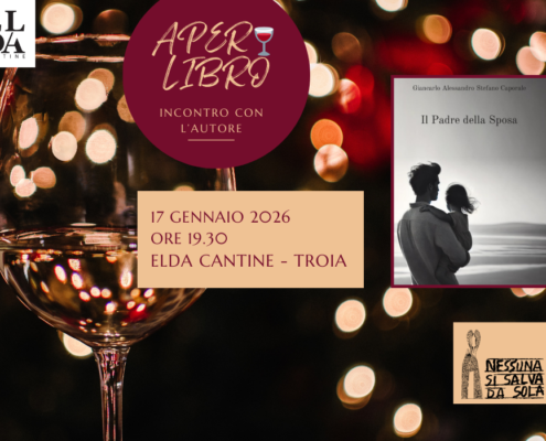 AperiLibro con l’autore per “Nessuna si salva da sola”. Giancarlo Alessandro Stefano Caporale presenta “Il Padre della Sposa” tra dialogo, riflessione e convivialità. L’iniziativa rientra nelle attività a sostegno della campagna di crowdfunding “Ali di libertà”. Sabato 17 gennaio 2026 ore 19.30, Elda Cantine, Troia