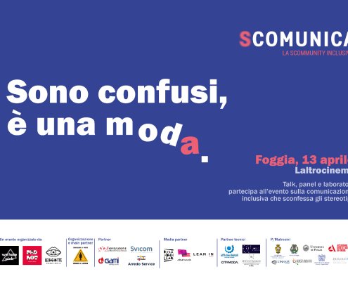sComunica: l’evento della sCommunity inclusiva. Panel, talk e workshop per scardinare gli stereotipi nella comunicazione commerciale, istituzionale e giornalistica su genere, LGBTQI+ e meridionalismo. Sabato 13 aprile 2024 dalle ore 9.30 c/o Laltrocinema a Foggia.