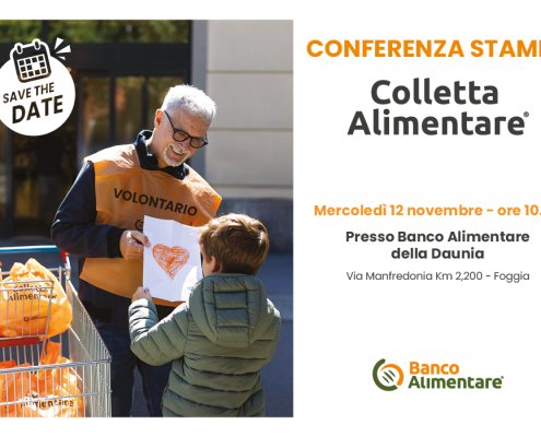Conferenza stampa di presentazione della 29° Giornata Nazionale della Colletta Alimentare. Mercoledì 12 novembre 2025 ore 10.00 al Banco Alimentare della Daunia, Foggia. L’iniziativa solidale promossa dalla Fondazione Banco Alimentare si svolgerà in tutta Italia sabato 15 novembre 2025.