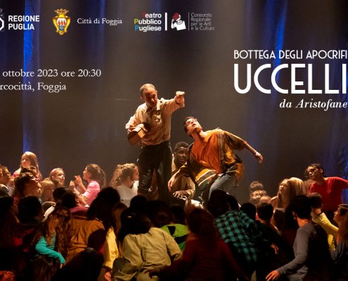 “Uccelli” in volo a Foggia. In scena 100 bambini e ragazzi della città per la produzione di comunità della Compagnia Bottega degli Apocrifi con il Comune di Foggia, Teatro Pubblico Pugliese e quattro istituti scolastici, all’interno del progetto “Fermenti di Antimafia”. Sabato 14 ottobre 2023 alle ore 20.30 a Parcocittà, Foggia.