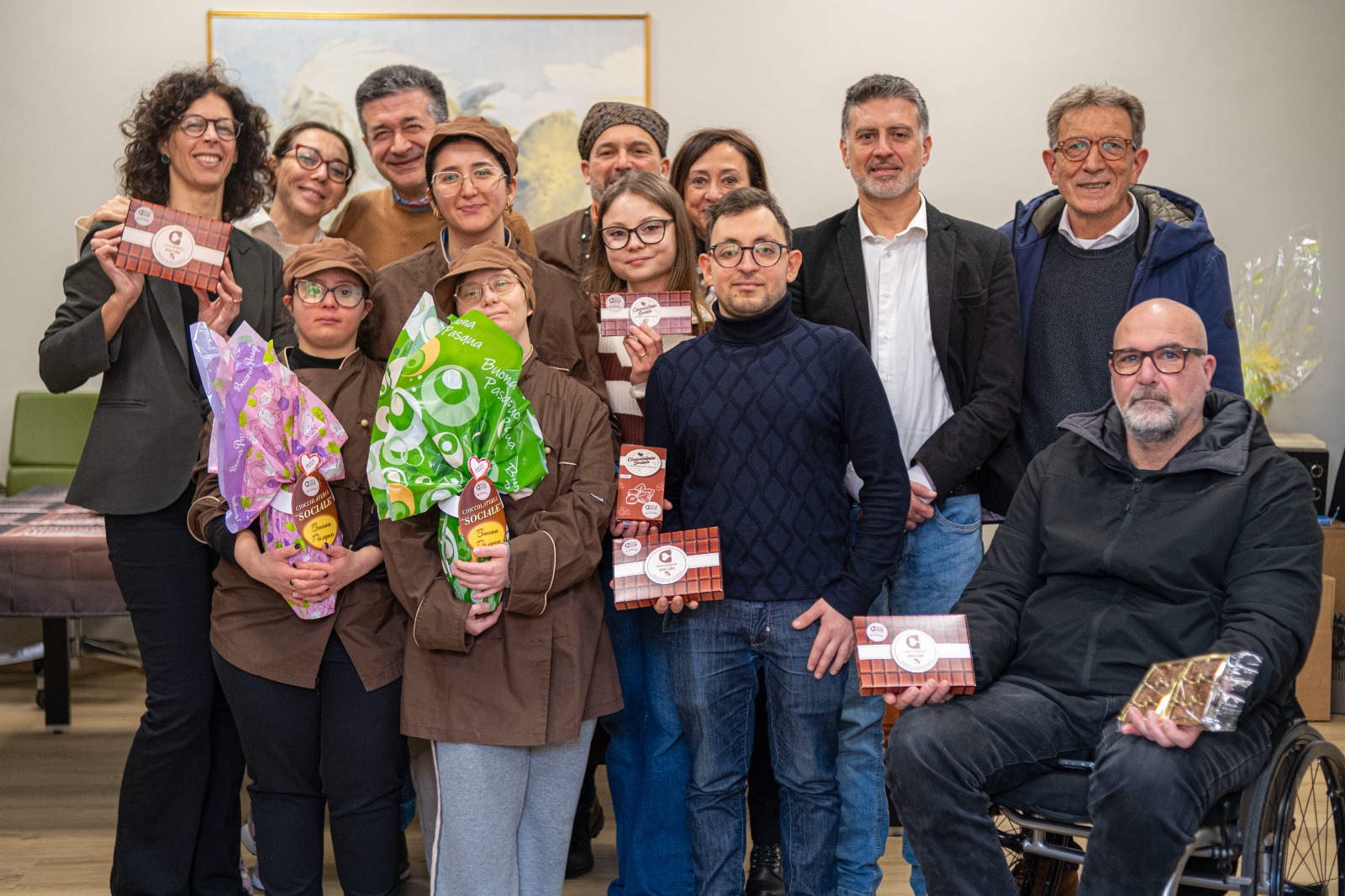 «Con la nascita di CioccoCoop realizziamo il nostro sogno: dare lavoro a otto persone, rispettando la percentuale prevista per i lavoratori con disabilità», ha dichiarato Tina Ieluzzi, presidente della cooperativa CioccoCoop e vicepresidente dell’associazione I Diversabili, che ha aggiunto: «Trasformiamo il cioccolato e realizziamo prodotti per tutte le occasioni, in particolare per le festività pasquali e natalizie. Questo risultato è frutto del percorso avviato all’interno dell’associazione, con cui continueremo a essere un tutt’uno. Essendo una cooperativa sociale, reinvestiremo gli utili nel sociale: è questa la nostra forza».