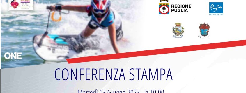 Conferenza stampa di presentazione del Motosurf World Championship 2023. Martedì 13 giugno 2023 ore 10.00, a Bari c/o il Palazzo della Presidenza della Regione Puglia. Sarà illustrato il programma della 2^ edizione del Campionato Mondiale di MotoSurf che si terrà dal 16 al 18 giugno a Rodi Garganico.