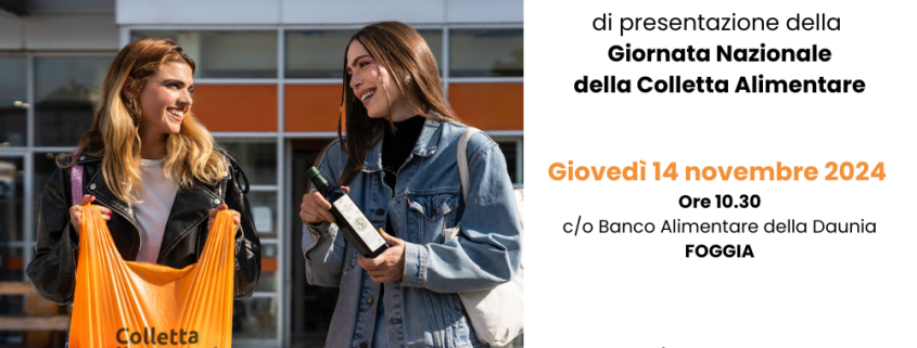 L’iniziativa sarà presentata in conferenza stampa a Foggia giovedì 14 novembre 2024 alle ore 10.30 presso la sede del Banco Alimentare della Daunia “F. Vassalli” (in via Manfredonia Km 2,200).