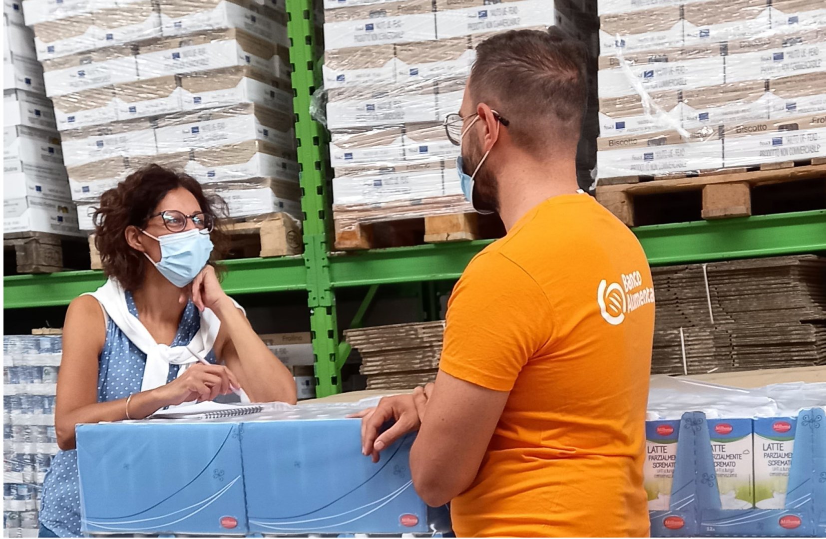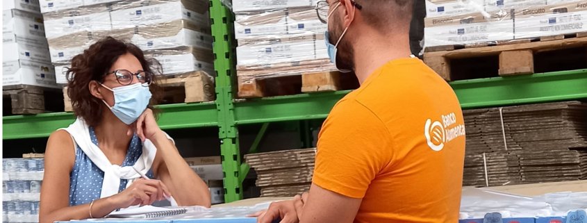 All’inizio ha legato molto con Gianluca, il direttore, che lo ha subito coinvolto nelle decisioni da prendere in merito all’organizzazione del lavoro nel magazzino. Da quando sono arrivati i ragazzi e le ragazze del servizio civile, a fine maggio, Alessandro si sente ancora più utile. “Sto insegnando loro molte cose perché sono qui da più tempo e sono pratico con i muletti. Alla fine trasferisco loro quello che altri hanno insegnato a me”, dice sorridendo con lo sguardo dietro i grandi occhiali. Fa un po’ da guida agli altri: infatti, quando sono entrata al magazzino e gli ho chiesto di fare una chiacchierata, mi ha detto di aspettare un attimo perché era appena arrivato il referente di una struttura caritativa a ritirare gli alimenti. “Facciamo prima questa consegna”, ha detto, mentre coordinava il lavoro dei volontari.