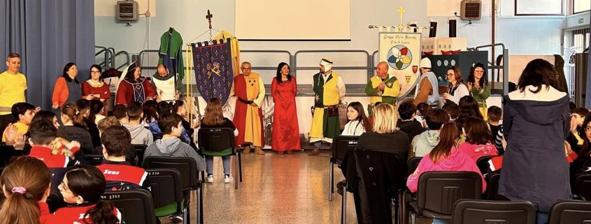 Circa 300 alunni delle classi quinte della scuola primaria hanno preso parte ai laboratori sul periodo imperiale romano, che hanno visto la realizzazione di tuniche, calzari, tavole cerate e la preparazione del dolce tipico romano detto “placentae”. Altri 300 alunni delle classi prime della secondaria di primo grado, invece, hanno preso parte ai laboratori sul periodo medievale, che hanno visto la realizzazione di tuniche e infule, cinture e accessori, stendardi, fondali e quinte scenografiche. Non è mancata la preparazione dei gustosi dolci dell’epoca detti “sfinci”.