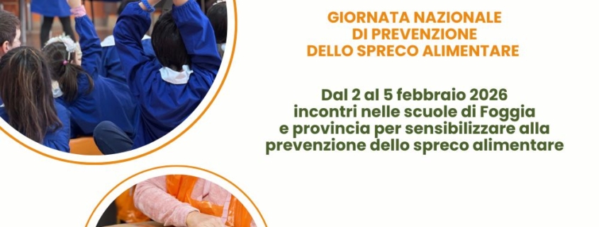 Il 5 febbraio 2026 si celebra la 13^ Giornata nazionale di Prevenzione dello Spreco Alimentare. Banco Alimentare della Daunia incontra gli studenti per sensibilizzare le nuove generazioni alla prevenzione dello spreco alimentare. Dal 2 al 5 febbraio 2026 in cinque istituti scolastici di Foggia e provincia. Agli incontri porteranno la testimonianza anche quattro organizzazioni partner convenzionate con Banco Alimentare della Daunia.