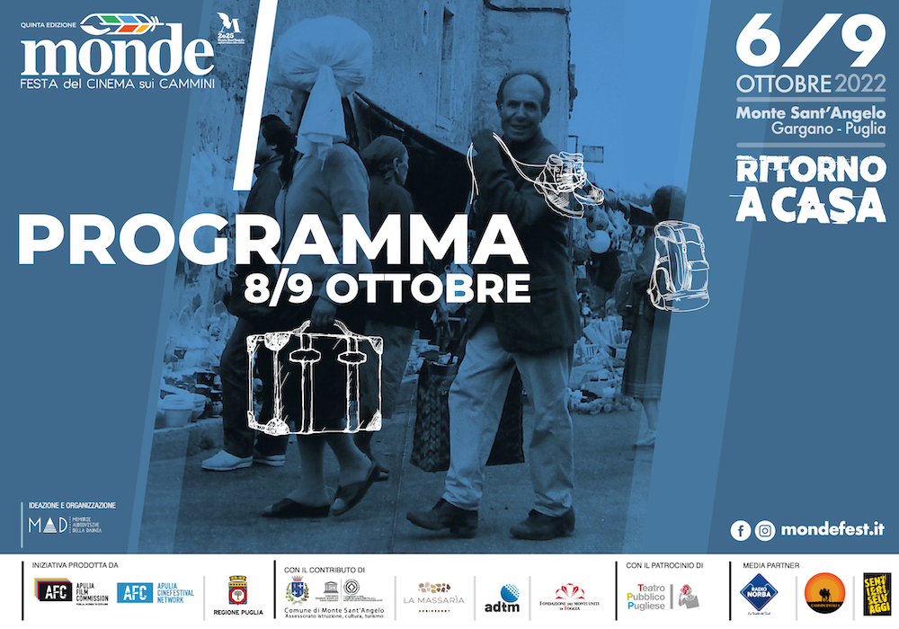 Il programma dell’8 e 9 ottobre a Mònde. Ospite d’onore Francesco Di Leva. Incontri con i registi, matinée con le scuole, masterclass, cammini e proiezioni sul tema “Ritorno a casa”. L’8 e 9 ottobre 2022 a Monte Sant’Angelo, sul Gargano.