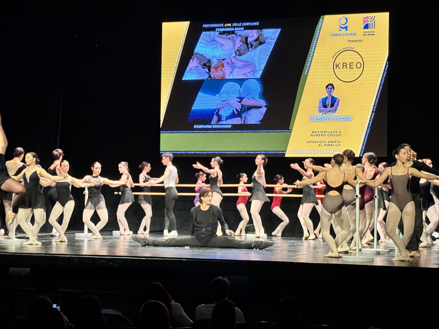 Il format KREO ha confermato la propria vocazione multidisciplinare: dalla masterclass a numero chiuso sul palcoscenico, riservata a danzatrici selezionate, fino al talk formativo con le direttrici delle scuole di danza presenti in sala, passando per le performance live delle compagnie Anam (Molise) e Soqquadro (Puglia), che hanno emozionato il pubblico con linguaggi coreutici diversi e complementari.