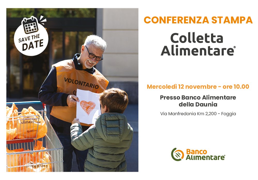 Banco Alimentare della Daunia “F. Vassalli” presenterà l’iniziativa in conferenza stampa a Foggia mercoledì 12 novembre 2025 alle ore 10.00 presso la sede in via Manfredonia Km 2,200.