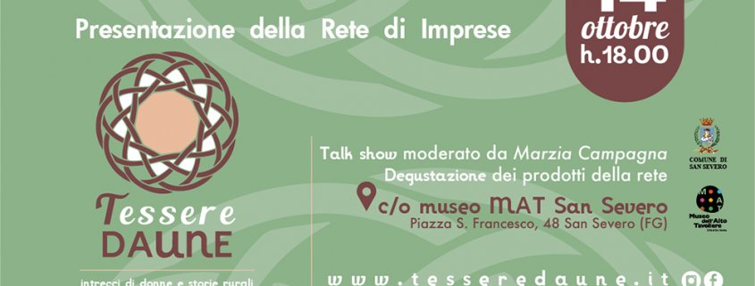 L’evento sarà trasmesso anche in diretta sulla pagina Facebook @tesseredaune a partire dalle ore 18.00 del 14 ottobre.