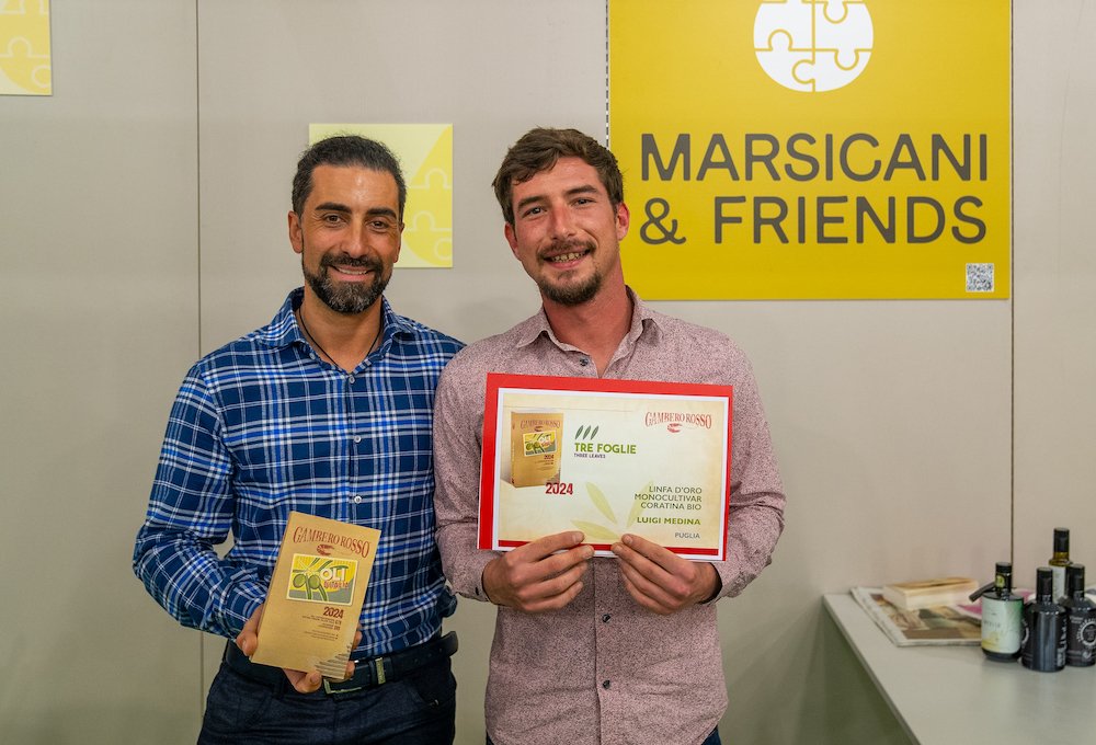 «Dopo tanto impegno siamo riusciti ad entrare nella Guida del Gambero Rosso e siamo molto orgogliosi dell’obiettivo raggiunto», affermano i due olivicoltori Gianluigi Medina (Oliveto Medina) e Ambrogio Caramia (Tenute Il Mandrione) che gioiscono insieme dei risultati ottenuti.