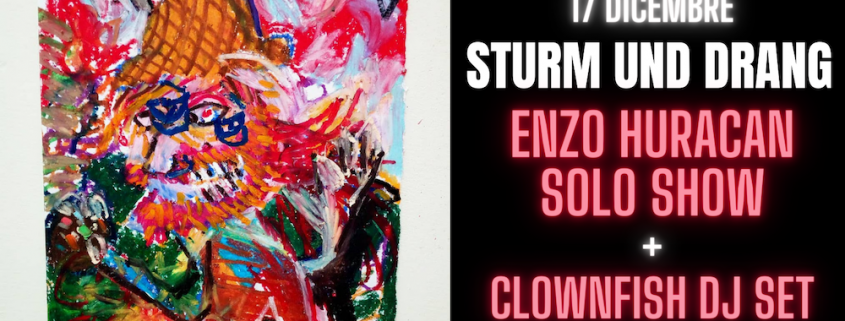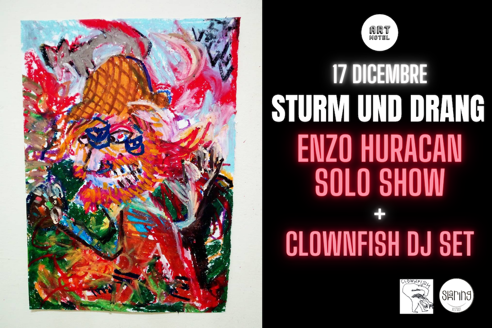Sturm und Drang: mostra personale di Enzo Huracan & Clownfish Dj Set a cura di Art Motel. Sabato 17 dicembre 2022 h 18.30 presso Sharing Bistrot, Foggia.