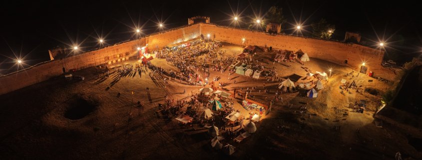 Personaggi in abiti storici d’epoca hanno accompagnato i visitatori in un’esperienza immersiva, attraverso scorci di vita quotidiana medievale e rievocazioni storiche di grande fascino. Accampamenti militari, spettacoli di falconeria, investitura dei cavalieri e, ogni sera, un appuntamento diverso: la Sfilata delle Dame delle 5 Porte Storiche con l’elezione della “Dama di Porta”, il Gioco dell’Oca vivente che ha visto gareggiare gli arcieri delle 5 Porte, la Giostra del Saraceno con la dimostrazione pratica dell’antica competizione medioevale e degli spettacoli equestri.