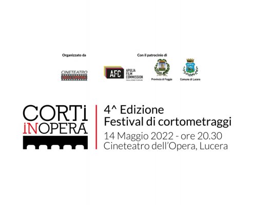 La 4^ edizione di “Corti in Opera” torna nella consueta veste primaverile. Dall’11 al 14 maggio 2022 al Cineteatro dell’Opera di Lucera.