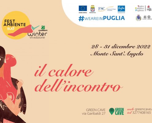 Torna FestambienteSud winter con “Il calore dell’incontro”. La VII edizione del festival evidenzia l’importanza dei momenti d’incontro offerti dalle occasioni culturali. Attesi Antonio Prencipe con la sua fisarmonica, Nabil Bey e Fabrizio Piepoli, il rapper-performer Shaone. Dal 28 al 31 dicembre 2022 nella Green Cave a Monte Sant’Angelo.