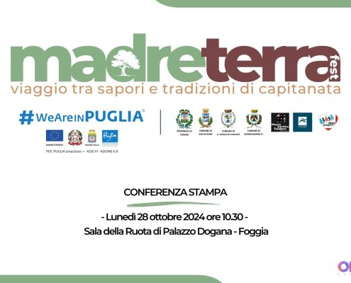 Conferenza stampa di presentazione della 1^ edizione del “Madreterra Fest”, viaggio tra sapori e tradizioni di Capitanata. Lunedì 28 ottobre 2024 ore 10.30, Sala della Ruota di Palazzo Dogana, Foggia.