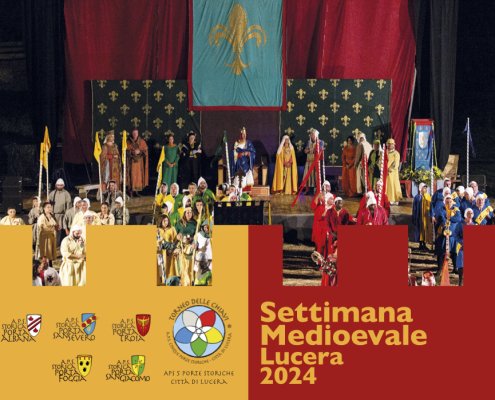 Al via gli “Eventi Medioevali” a Lucera. La città si veste a festa con gli stendardi delle Cinque Porte ed è pronta per il Villaggio Medioevale, il Torneo delle Chiavi e il Corte Storico. Anteprima, il 5 agosto, con la presentazione del libro “Le Chiavi in Palio. Il corteo storico e il torneo delle chiavi della Città di Lucera” a cura di Massimiliano Monaco e relativa mostra. Dall’8 al 13 agosto 2024 a Lucera.