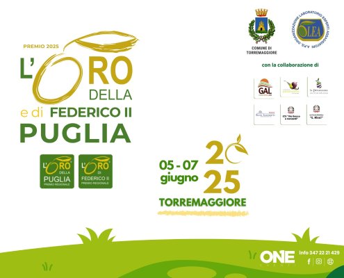 A Torremaggiore si promuove la cultura dell’olio extravergine di oliva tra i giovani con i laboratori “Extravergine? Piacere di conoscerti”, all’interno del premio “L’Oro della Puglia e di Federico II”. Fino al 7 giugno un ricco programma di appuntamenti per celebrare l’eccellenza olivicola dell’Alto Tavoliere con focus sulla Peranzana.