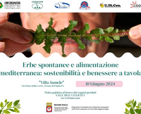 “Erbe spontanee e alimentazione mediterranea: sostenibilità e benessere a tavola”. L’incontro promosso da Cittadinanzattiva Puglia Aps per sensibilizzare le nuove generazioni al consumo consapevole e alla sana alimentazione. Testimonial dell’evento: il cuoco contadino Peppe Zullo. Lunedì 10 giugno 2024 ore 10.30 a Villa Jamele, Orsara di Puglia.