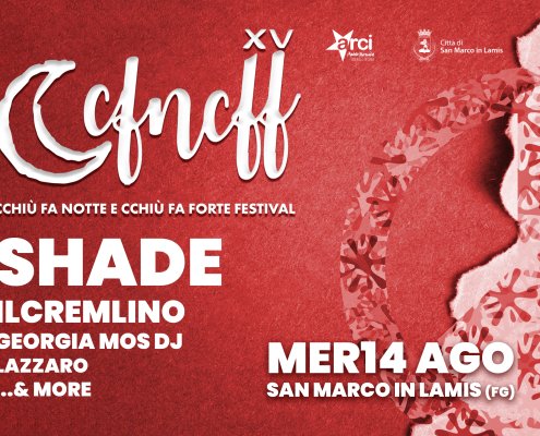Grande attesa per il cantante e freestyler Shade alla 15^ edizione di Cchiù fa Notte e Cchiù fa Forte Festival. Lo annuncia il direttivo in occasione dei 40 anni dell’Arci “Pablo Neruda”. Mercoledì 14 agosto 2024 a San Marco in Lamis, sul Gargano.