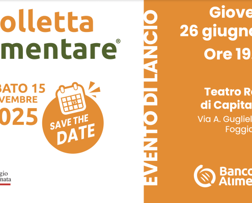 Save the date – evento di lancio Colletta Alimentare 2025. Giovedì 26 giugno 2025 ore 19.00, Teatro Regio di Capitanata, Foggia.