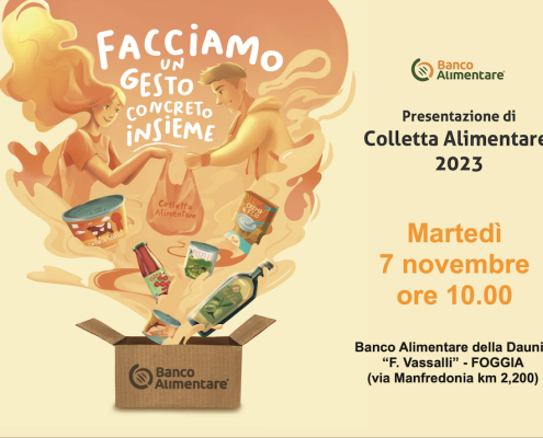 Conferenza stampa di presentazione della 27° Giornata Nazionale della Colletta Alimentare. Martedì 7 novembre 2023 ore 10.00 al Banco Alimentare della Daunia, Foggia.