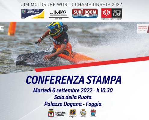 Motosurf World Championship 2022: conferenza stampa di presentazione. Martedì 6 settembre 2022 ore 10.30 c/o Sala della Ruota di Palazzo Dogana a Foggia.