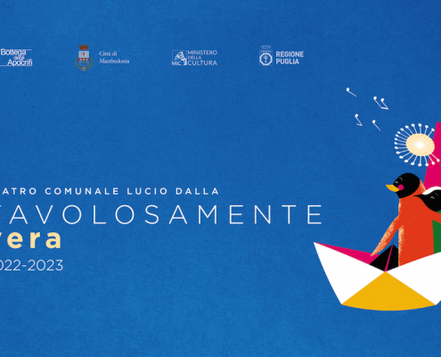 Il piacere di ritrovarsi a teatro: torna “Favolosamente Vera”, la rassegna teatrale dedicata alle nuove generazioni ideata dalla Compagnia Bottega degli Apocrifi. Nove appuntamenti domenicali, dodici matinée per le scuole e quattro laboratori formativi. Dal 6 novembre al Teatro Comunale “Lucio Dalla” di Manfredonia.