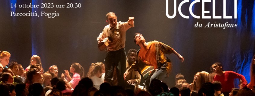 “Uccelli” in volo a Foggia. In scena 100 bambini e ragazzi della città per la produzione di comunità della Compagnia Bottega degli Apocrifi con il Comune di Foggia, Teatro Pubblico Pugliese e quattro istituti scolastici, all’interno del progetto “Fermenti di Antimafia”. Sabato 14 ottobre 2023 alle ore 20.30 a Parcocittà, Foggia.
