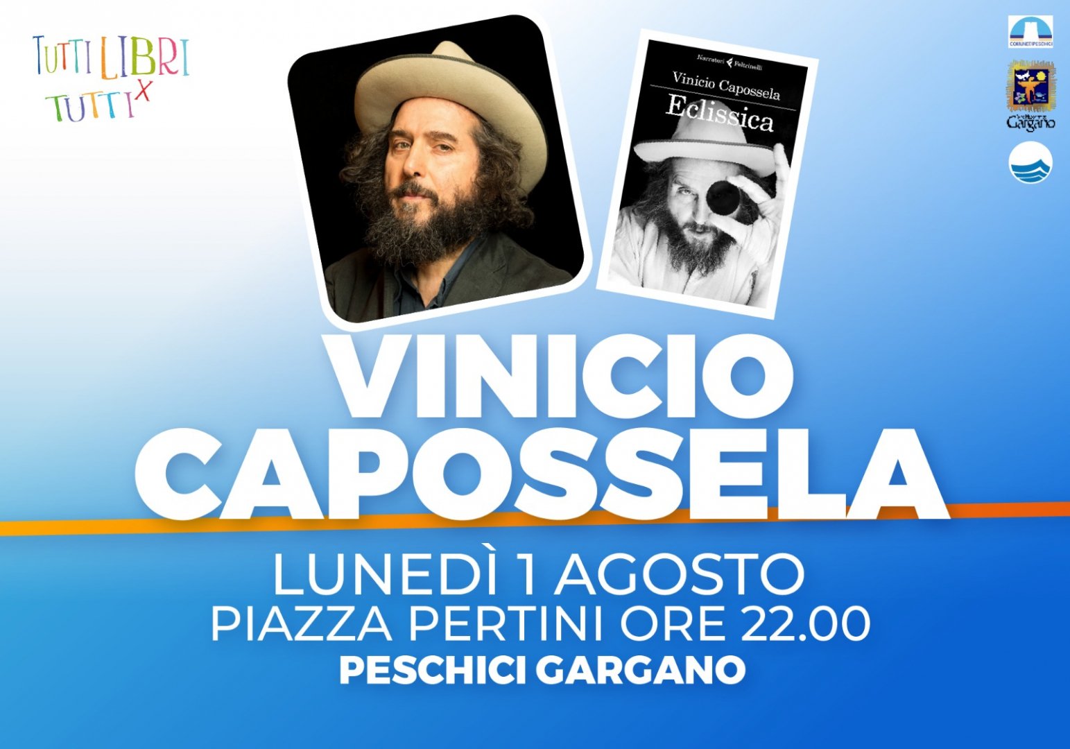 Vinicio Capossela presenta “Eclissica” a Tuttilibri – Libri x Tutti. A dialogare con il poliedrico cantautore e scrittore sarà Marino Sinibaldi. Lunedì 1° agosto h 22.00. piazza Pertini – Peschici.